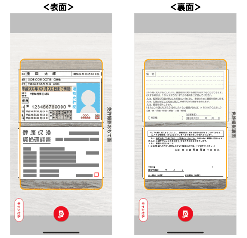 ※スマートフォン端末の機種によって、カメラのピントが合いづらい場合がございますので、カメラと免許証の距離を離すなどピントの合う位置で撮影をお願いします。